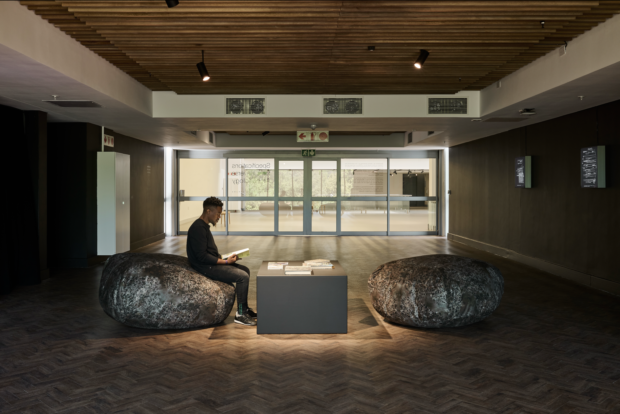 Curated by Gabi Ngcobo, Specifications for a Reverse Archaeology drew from indigenous techno-spiritual histories to imagines a series of non-extractive engagements with the material and ethereal world connected to Mapungubwe. The colour palette and exhibition design spoke to concepts of deep time, black space and the anticipation of an alter-future.