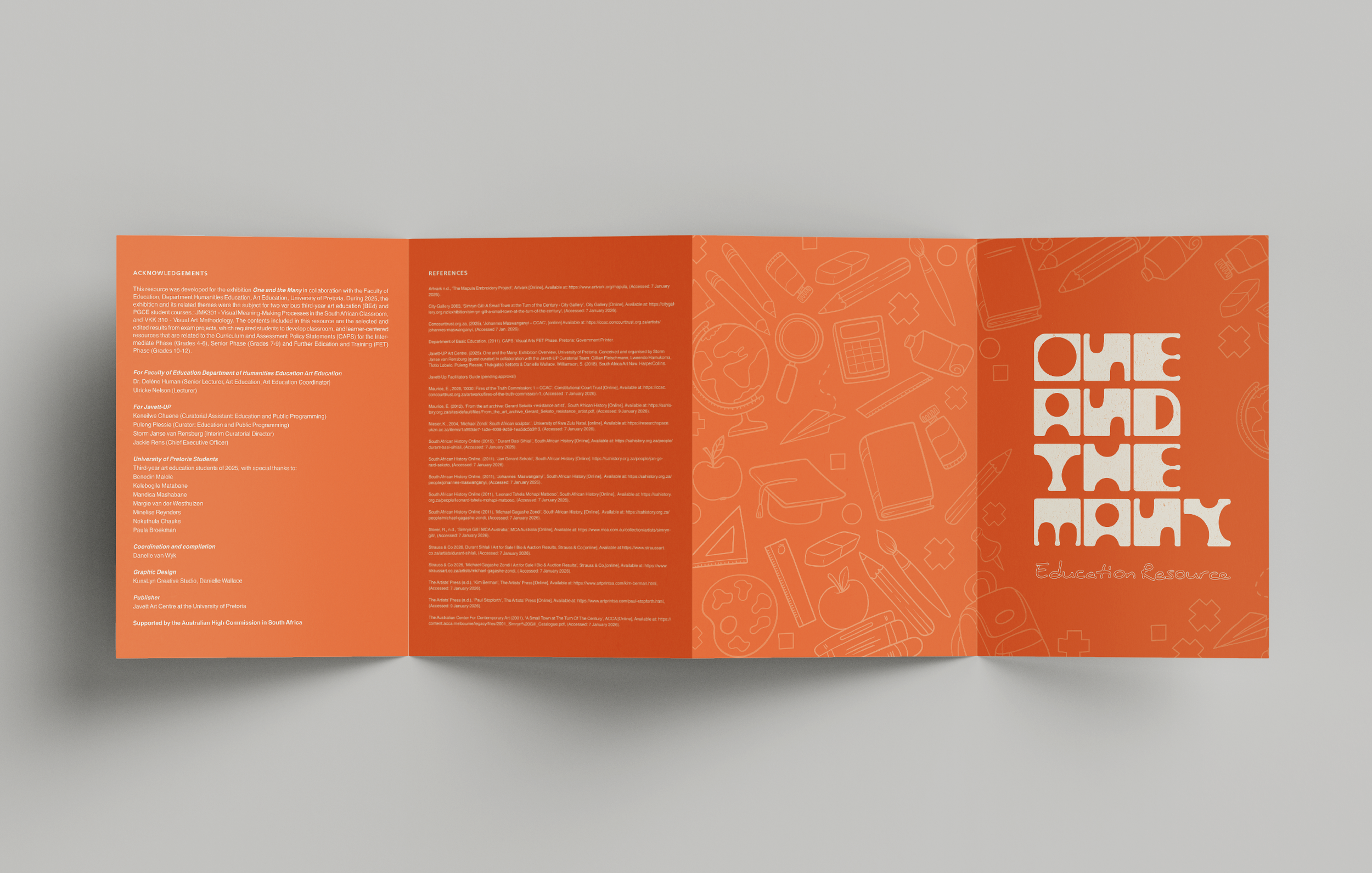 This resource was developed for the exhibition One and the Many in collaboration with the Faculty of Education at the University of Pretoria. Three distinct resources were created as part of the content package, each aligned with the Curriculum and Assessment Policy Statements (CAPS) for the Intermediate Phase (Grades 4–6), Senior Phase (Grades 7–9), and Further Education and Training (FET) Phase (Grades 10–12). The fold-out worksheets were designed to be engaging and interactive, encouraging drawing, imagination, and active participation through museum treasure hunts. These materials bring the exhibition to life through intentional educational activities that align closely with the school curriculum.